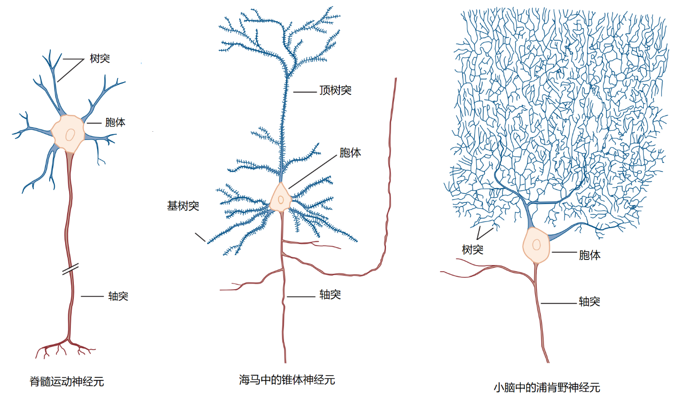 图 1 三种不同类型的神经元|图源:Eric R. Kandel, Principles of Neural Science, Fifth Edition, 第25页
