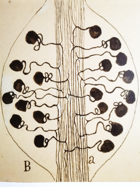 图 6 卡哈尔手绘的哺乳动物的背根神经节|图源:大脑之美:圣地亚哥·拉蒙-卡哈尔绘图集,湖南科学技术出版社,2020年,119页